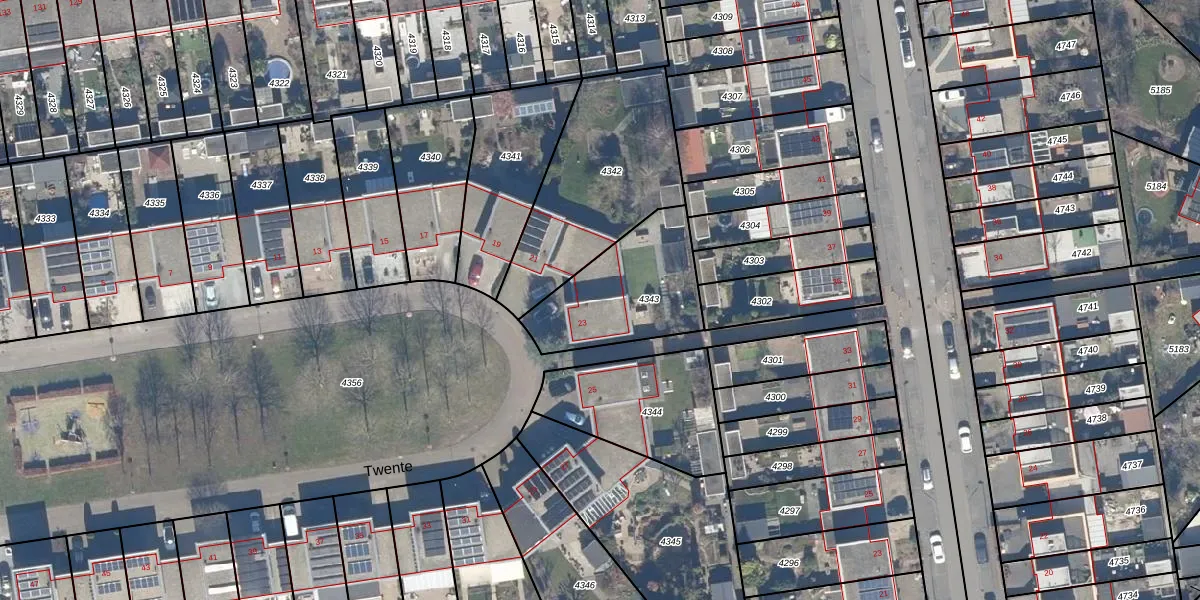 Gebruik de zoekbalk of klik op een perceel voor informatie over de adressen binnen dit perceel.