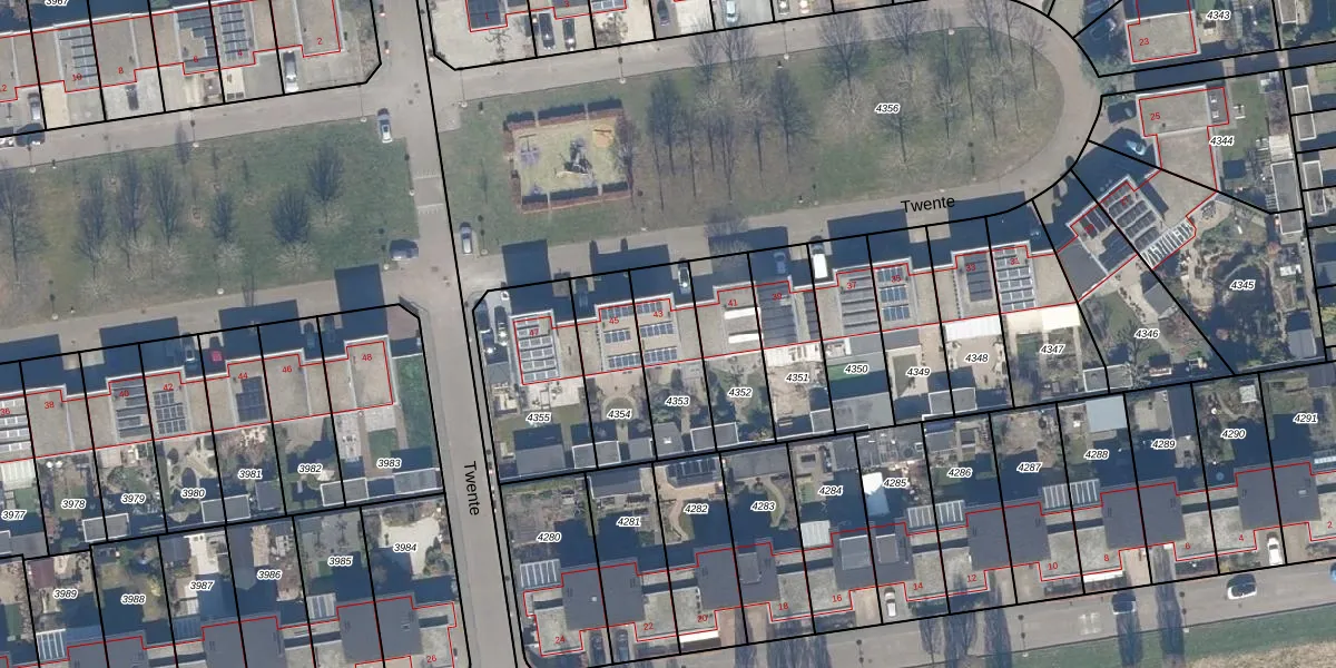 Gebruik de zoekbalk of klik op een perceel voor informatie over de adressen binnen dit perceel.
