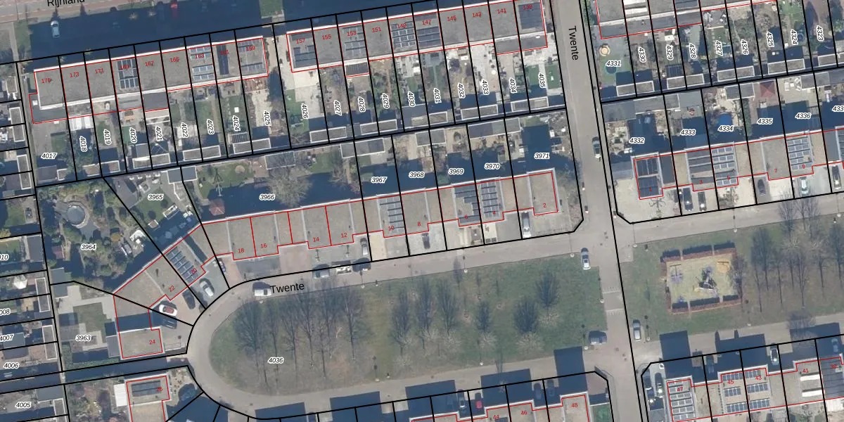 Het perceel waarop Twente 8 staat heeft een oppervlakte van 263 m². Dit is een middelgroot perceel. De perceeloppervlakte wordt geregistreerd door het Kadaster. Gedetailleerde informatie over de maten van dit perceel kunt u vinden in het rapport Kadastrale kaart met maatvoering van Twente 8.