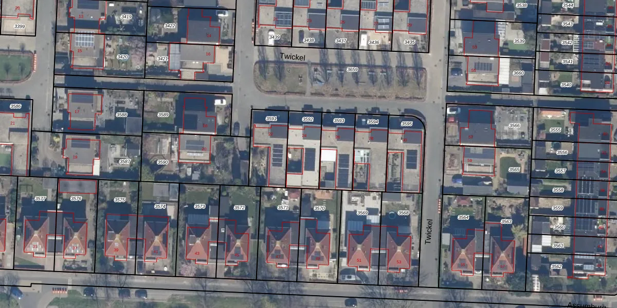 Gebruik de zoekbalk of klik op een perceel voor informatie over de adressen binnen dit perceel.