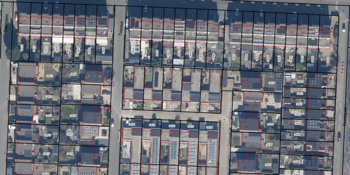 Gebruik de zoekbalk of klik op een perceel voor informatie over de adressen binnen dit perceel.
