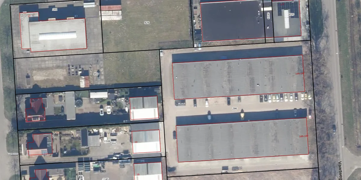 Het perceel waarop Vaartweg 14-N staat heeft een oppervlakte van 5964 m². Dit is een zeer groot perceel. De perceeloppervlakte wordt geregistreerd door het Kadaster. Gedetailleerde informatie over de maten van dit perceel kunt u vinden in het rapport Kadastrale kaart met maatvoering van Vaartweg 14-N.