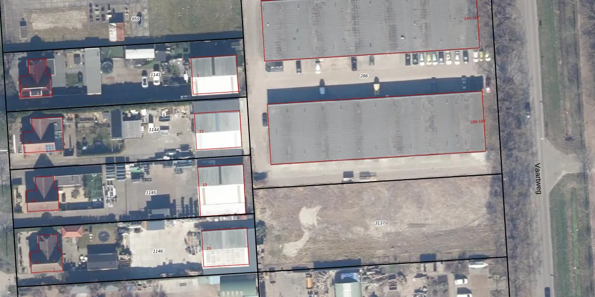 Het perceel waarop Vaartweg 18-N staat heeft een oppervlakte van 5964 m². Dit is een zeer groot perceel. De perceeloppervlakte wordt geregistreerd door het Kadaster. Gedetailleerde informatie over de maten van dit perceel kunt u vinden in het rapport Kadastrale kaart met maatvoering van Vaartweg 18-N.