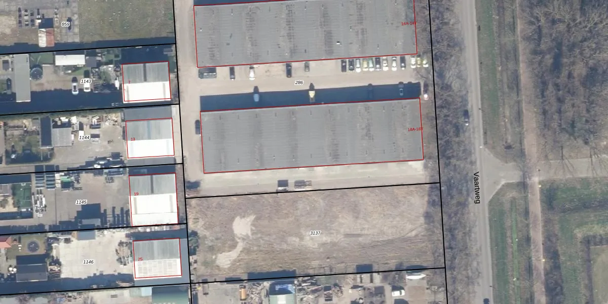 Het perceel waarop Vaartweg 18-S staat heeft een oppervlakte van 5964 m². Dit is een zeer groot perceel. De perceeloppervlakte wordt geregistreerd door het Kadaster. Gedetailleerde informatie over de maten van dit perceel kunt u vinden in het rapport Kadastrale kaart met maatvoering van Vaartweg 18-S.