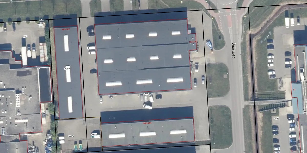 Het perceel waarop Vaartweg 58-J staat heeft een oppervlakte van 6824 m². Dit is een zeer groot perceel. De perceeloppervlakte wordt geregistreerd door het Kadaster. Gedetailleerde informatie over de maten van dit perceel kunt u vinden in het rapport Kadastrale kaart met maatvoering van Vaartweg 58-J.