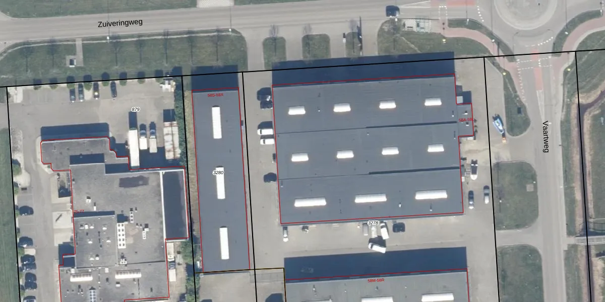 Het perceel waarop Vaartweg 58-F staat heeft een oppervlakte van 6824 m². Dit is een zeer groot perceel. De perceeloppervlakte wordt geregistreerd door het Kadaster. Gedetailleerde informatie over de maten van dit perceel kunt u vinden in het rapport Kadastrale kaart met maatvoering van Vaartweg 58-F.