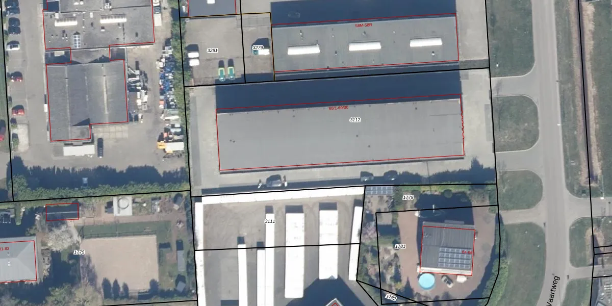 Het perceel waarop Vaartweg 60-21 staat heeft een oppervlakte van 3648 m². Dit is een zeer groot perceel. De perceeloppervlakte wordt geregistreerd door het Kadaster. Gedetailleerde informatie over de maten van dit perceel kunt u vinden in het rapport Kadastrale kaart met maatvoering van Vaartweg 60-21.