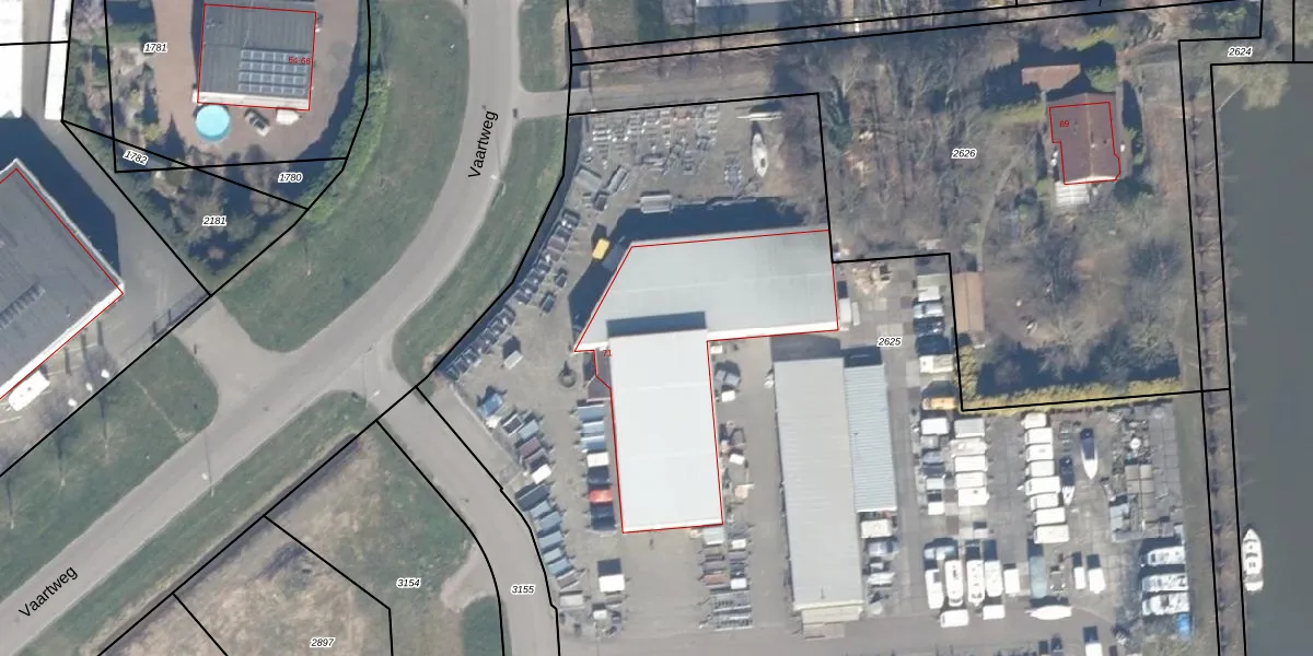 Vaartweg 71 is gelegen op kadastraal perceel LLS00N2625. Deze kadastrale aanduiding is uniek en wordt gebruikt door het Kadaster om eigendomsrechten en andere zakelijke rechten vast te leggen. Het perceel maakt onderdeel uit van de kadastrale gemeente Lelystad.