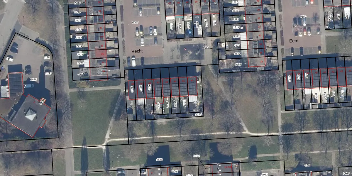 Gebruik de zoekbalk of klik op een perceel voor informatie over de adressen binnen dit perceel.