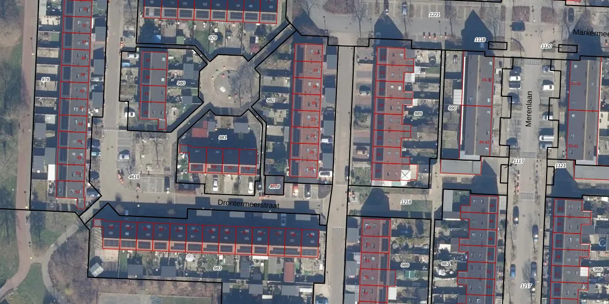 Het perceel waarop Veluwemeerstraat 26 staat heeft een oppervlakte van 1114 m². Dit is een zeer groot perceel. De perceeloppervlakte wordt geregistreerd door het Kadaster. Gedetailleerde informatie over de maten van dit perceel kunt u vinden in het rapport Kadastrale kaart met maatvoering van Veluwemeerstraat 26.