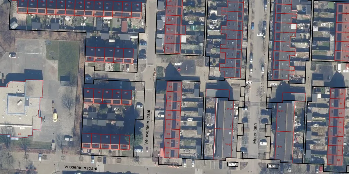 Het perceel waarop Veluwemeerstraat 53 staat heeft een oppervlakte van 1266 m². Dit is een zeer groot perceel. De perceeloppervlakte wordt geregistreerd door het Kadaster. Gedetailleerde informatie over de maten van dit perceel kunt u vinden in het rapport Kadastrale kaart met maatvoering van Veluwemeerstraat 53.