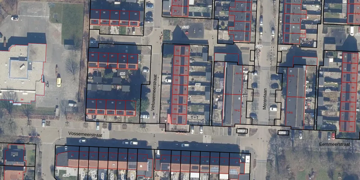 Het perceel waarop Veluwemeerstraat 61 staat heeft een oppervlakte van 1266 m². Dit is een zeer groot perceel. De perceeloppervlakte wordt geregistreerd door het Kadaster. Gedetailleerde informatie over de maten van dit perceel kunt u vinden in het rapport Kadastrale kaart met maatvoering van Veluwemeerstraat 61.