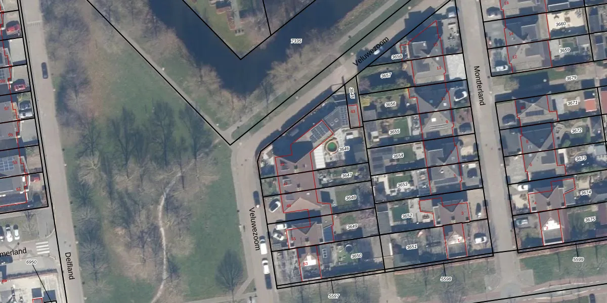 Het perceel waarop Veluwezoom 45 staat heeft een oppervlakte van 602 m². Dit is een groot perceel. De perceeloppervlakte wordt geregistreerd door het Kadaster. Gedetailleerde informatie over de maten van dit perceel kunt u vinden in het rapport Kadastrale kaart met maatvoering van Veluwezoom 45.