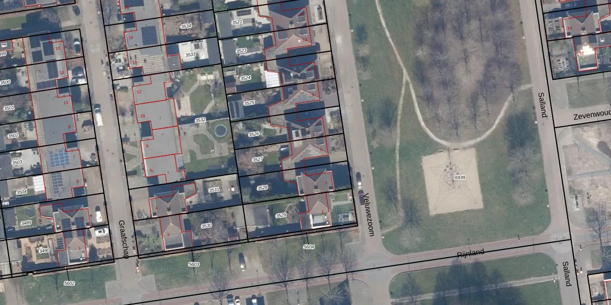 Gebruik de zoekbalk of klik op een perceel voor informatie over de adressen binnen dit perceel.