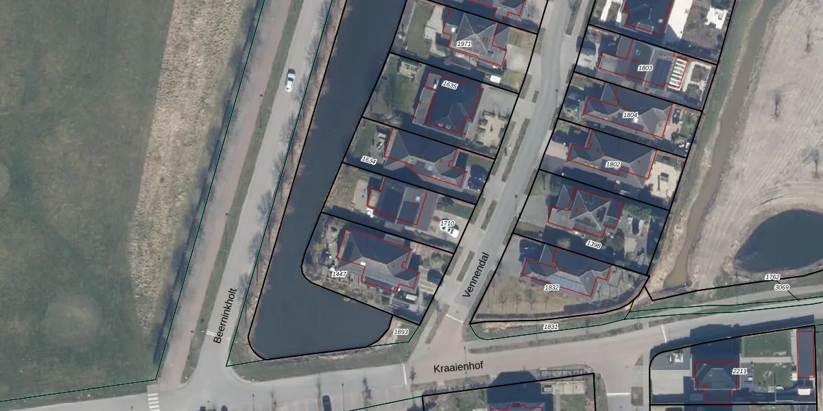 Het perceel waarop Vennendal 3 staat heeft een oppervlakte van 443 m². Dit is een groot perceel. De perceeloppervlakte wordt geregistreerd door het Kadaster. Gedetailleerde informatie over de maten van dit perceel kunt u vinden in het rapport Kadastrale kaart met maatvoering van Vennendal 3.