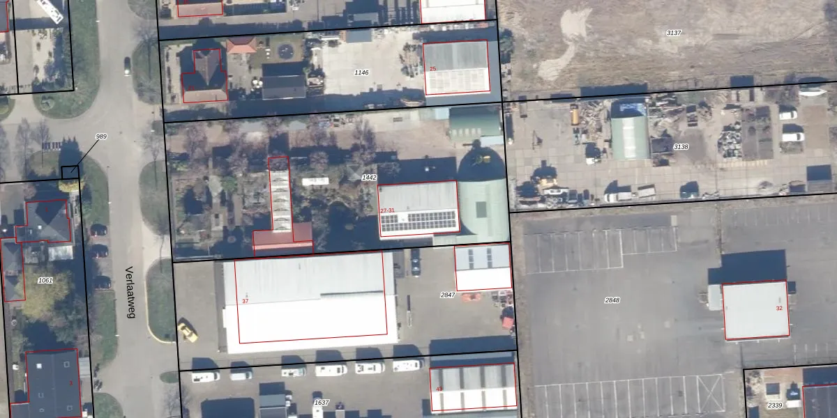 Verlaatweg 31 is gelegen op kadastraal perceel LLS00N1442. Deze kadastrale aanduiding is uniek en wordt gebruikt door het Kadaster om eigendomsrechten en andere zakelijke rechten vast te leggen. Het perceel maakt onderdeel uit van de kadastrale gemeente Lelystad.