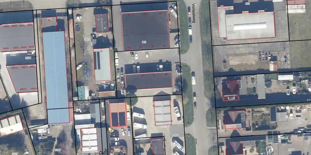 Het perceel waarop Verlaatweg 4-I staat heeft een oppervlakte van 1260 m². Dit is een zeer groot perceel. De perceeloppervlakte wordt geregistreerd door het Kadaster. Gedetailleerde informatie over de maten van dit perceel kunt u vinden in het rapport Kadastrale kaart met maatvoering van Verlaatweg 4-I.