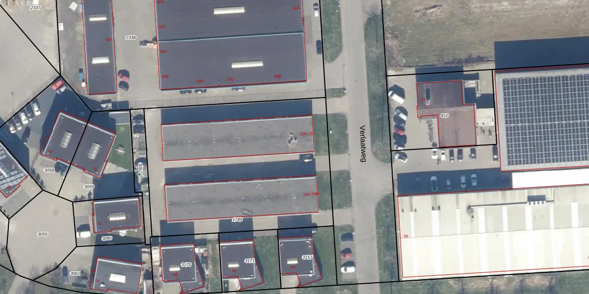 Het perceel waarop Verlaatweg 72-L staat heeft een oppervlakte van 2703 m². Dit is een zeer groot perceel. De perceeloppervlakte wordt geregistreerd door het Kadaster. Gedetailleerde informatie over de maten van dit perceel kunt u vinden in het rapport Kadastrale kaart met maatvoering van Verlaatweg 72-L.