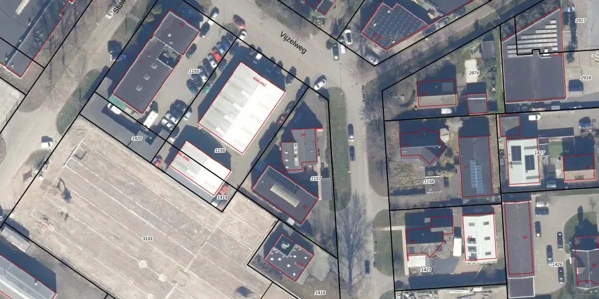 Het perceel waarop Vijzelweg 56 staat heeft een oppervlakte van 1021 m². Dit is een zeer groot perceel. De perceeloppervlakte wordt geregistreerd door het Kadaster. Gedetailleerde informatie over de maten van dit perceel kunt u vinden in het rapport Kadastrale kaart met maatvoering van Vijzelweg 56.