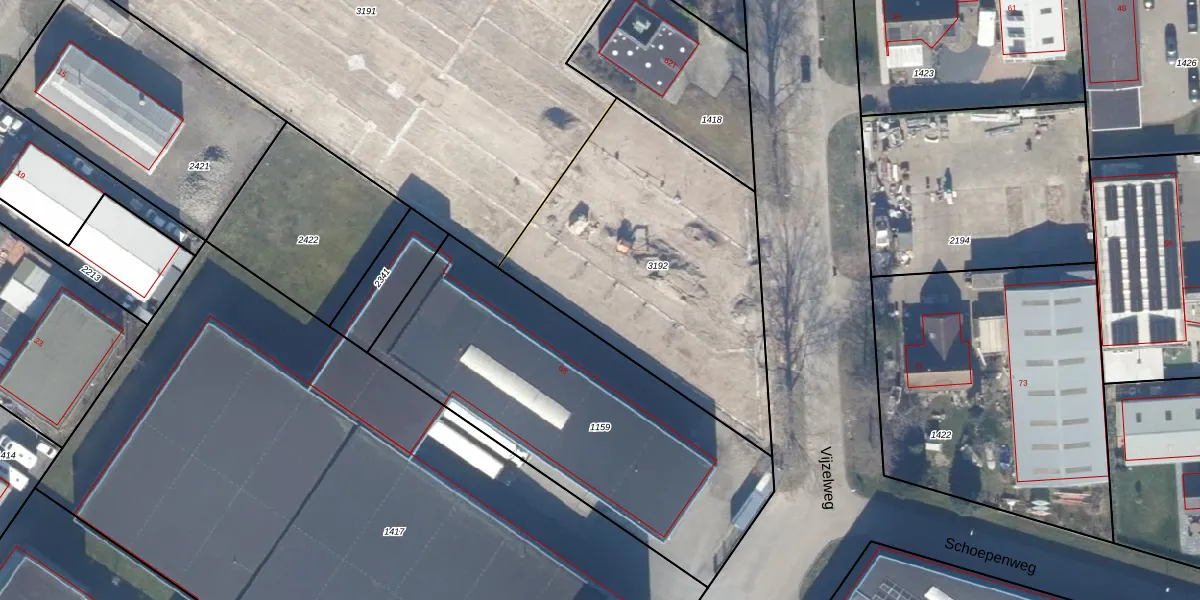 Het perceel waarop Vijzelweg 64-G staat heeft een oppervlakte van 1448 m². Dit is een zeer groot perceel. De perceeloppervlakte wordt geregistreerd door het Kadaster. Gedetailleerde informatie over de maten van dit perceel kunt u vinden in het rapport Kadastrale kaart met maatvoering van Vijzelweg 64-G.