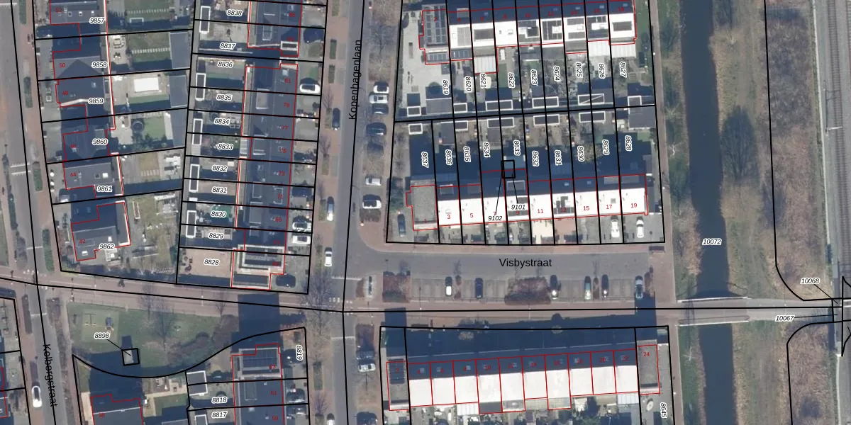 Het perceel waarop Visbystraat 1 staat heeft een oppervlakte van 306 m². Dit is een groot perceel. De perceeloppervlakte wordt geregistreerd door het Kadaster. Gedetailleerde informatie over de maten van dit perceel kunt u vinden in het rapport Kadastrale kaart met maatvoering van Visbystraat 1.