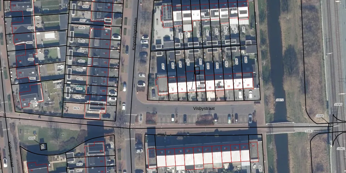 Het perceel waarop Visbystraat 3 staat heeft een oppervlakte van 160 m². Dit is een middelgroot perceel. De perceeloppervlakte wordt geregistreerd door het Kadaster. Gedetailleerde informatie over de maten van dit perceel kunt u vinden in het rapport Kadastrale kaart met maatvoering van Visbystraat 3.