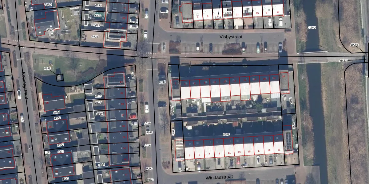Het perceel waarop Visbystraat 4 staat heeft een oppervlakte van 3032 m². Dit is een zeer groot perceel. De perceeloppervlakte wordt geregistreerd door het Kadaster. Gedetailleerde informatie over de maten van dit perceel kunt u vinden in het rapport Kadastrale kaart met maatvoering van Visbystraat 4.