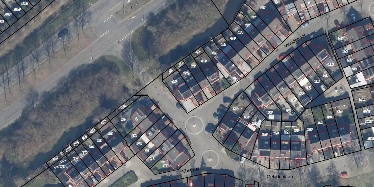 Het perceel waarop Vloedstraat 1 staat heeft een oppervlakte van 199 m². Dit is een middelgroot perceel. De perceeloppervlakte wordt geregistreerd door het Kadaster. Gedetailleerde informatie over de maten van dit perceel kunt u vinden in het rapport Kadastrale kaart met maatvoering van Vloedstraat 1.