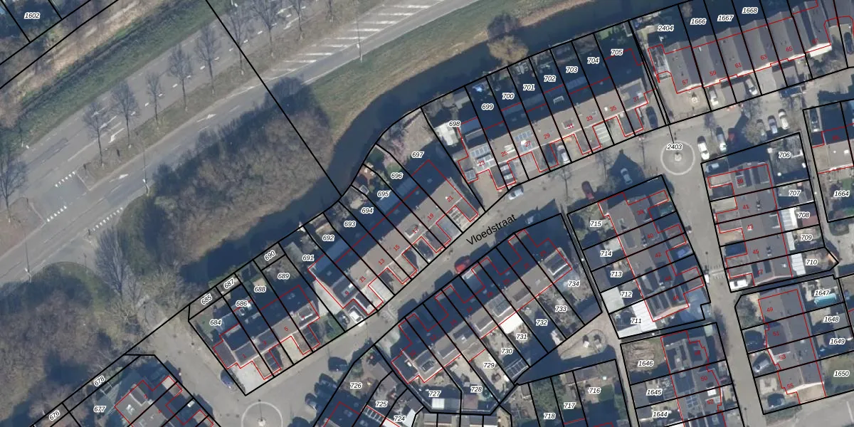 Het perceel waarop Vloedstraat 19 staat heeft een oppervlakte van 156 m². Dit is een middelgroot perceel. De perceeloppervlakte wordt geregistreerd door het Kadaster. Gedetailleerde informatie over de maten van dit perceel kunt u vinden in het rapport Kadastrale kaart met maatvoering van Vloedstraat 19.