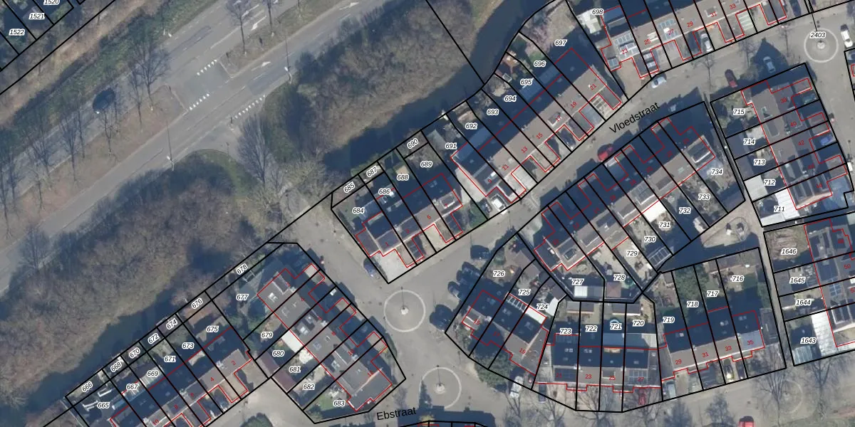 Gebruik de zoekbalk of klik op een perceel voor informatie over de adressen binnen dit perceel.