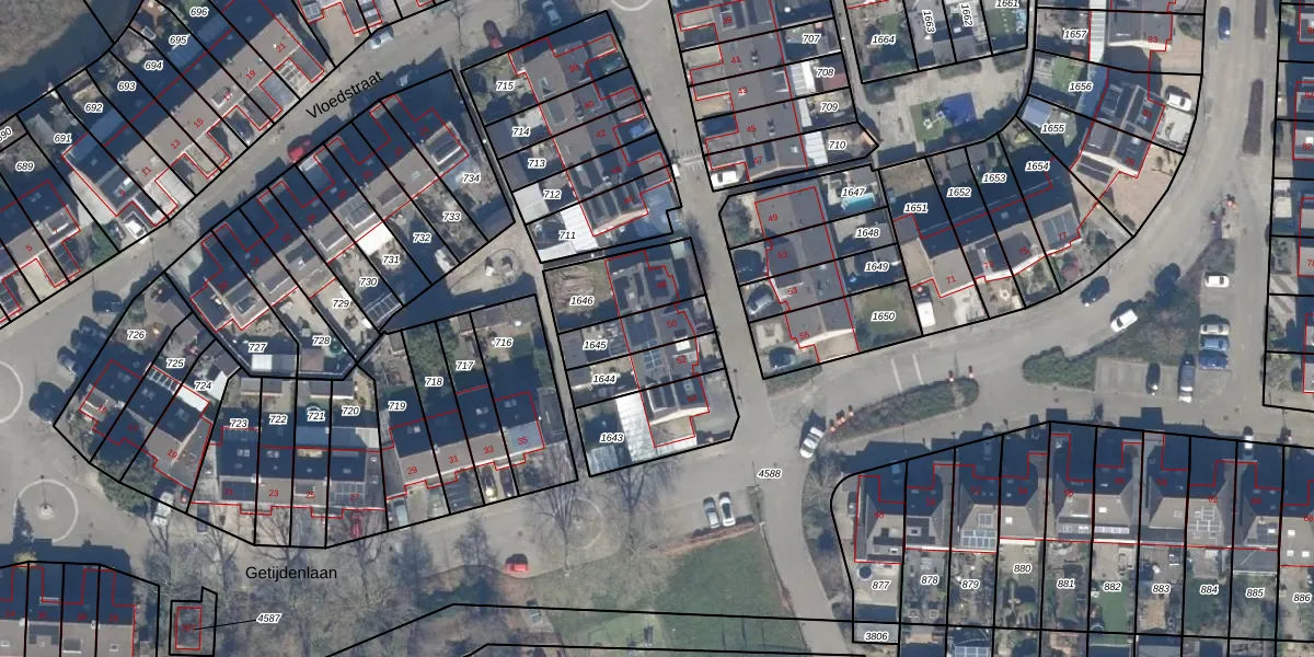 Vloedstraat 50 is gelegen op kadastraal perceel LLS00P1645. Deze kadastrale aanduiding is uniek en wordt gebruikt door het Kadaster om eigendomsrechten en andere zakelijke rechten vast te leggen. Het perceel maakt onderdeel uit van de kadastrale gemeente Lelystad.