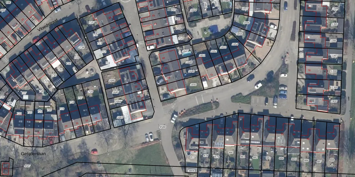 Het perceel waarop Vloedstraat 55 staat heeft een oppervlakte van 223 m². Dit is een middelgroot perceel. De perceeloppervlakte wordt geregistreerd door het Kadaster. Gedetailleerde informatie over de maten van dit perceel kunt u vinden in het rapport Kadastrale kaart met maatvoering van Vloedstraat 55.