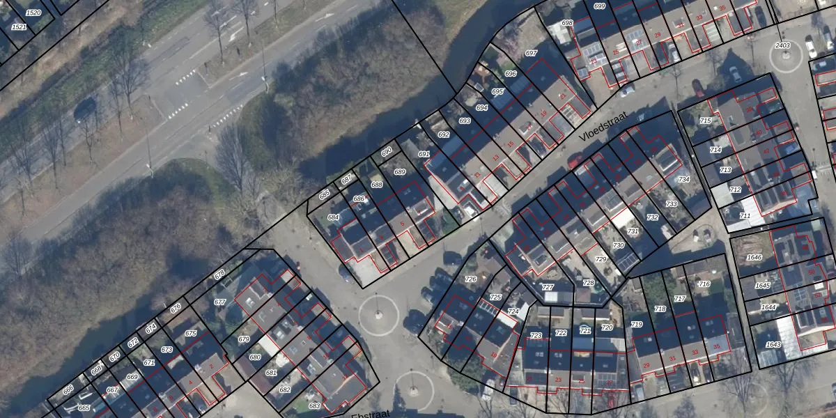 Het perceel waarop Vloedstraat 7 staat heeft een oppervlakte van 180 m². Dit is een middelgroot perceel. De perceeloppervlakte wordt geregistreerd door het Kadaster. Gedetailleerde informatie over de maten van dit perceel kunt u vinden in het rapport Kadastrale kaart met maatvoering van Vloedstraat 7.