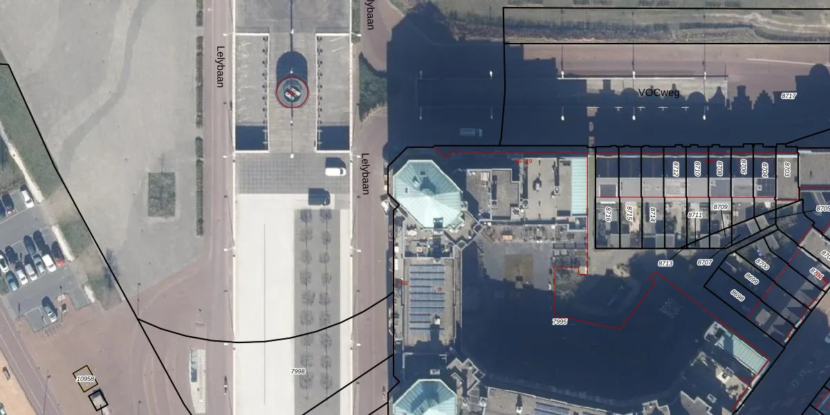 Het adres is gelegen op perceel 7995 in de sectie M en de kadastrale gemeente Lelystad. De kadastrale aanduiding is aldus LLS00-M-7995. De gemiddelde perceelgrootte in Lelystad is 2,1 ha. Dit perceel is kleiner: de perceeloppervlakte bedraagt 5424 m². De grootste perceeloppervlakte in de kadastrale gemeente is 78,50 km². De kleinste oppervlakte bedraagt 0 m². Op het perceel liggen in totaal 106 adressen. De huidige grenzen van het perceel zijn digitaal in de Basisregistratie Kadaster (BRK) geregistreerd op 18-10-2010.