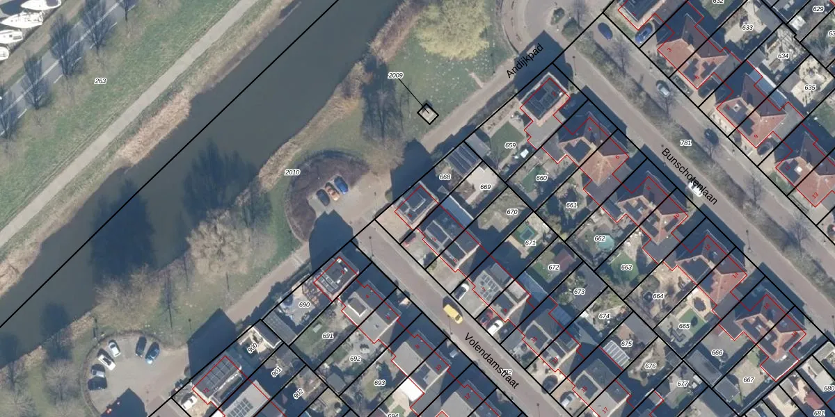 Het perceel waarop Volendamstraat 1 staat heeft een oppervlakte van 215 m². Dit is een middelgroot perceel. De perceeloppervlakte wordt geregistreerd door het Kadaster. Gedetailleerde informatie over de maten van dit perceel kunt u vinden in het rapport Kadastrale kaart met maatvoering van Volendamstraat 1.