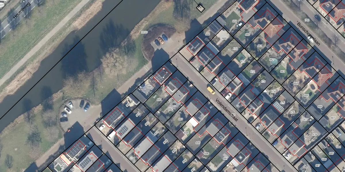 Gebruik de zoekbalk of klik op een perceel voor informatie over de adressen binnen dit perceel.