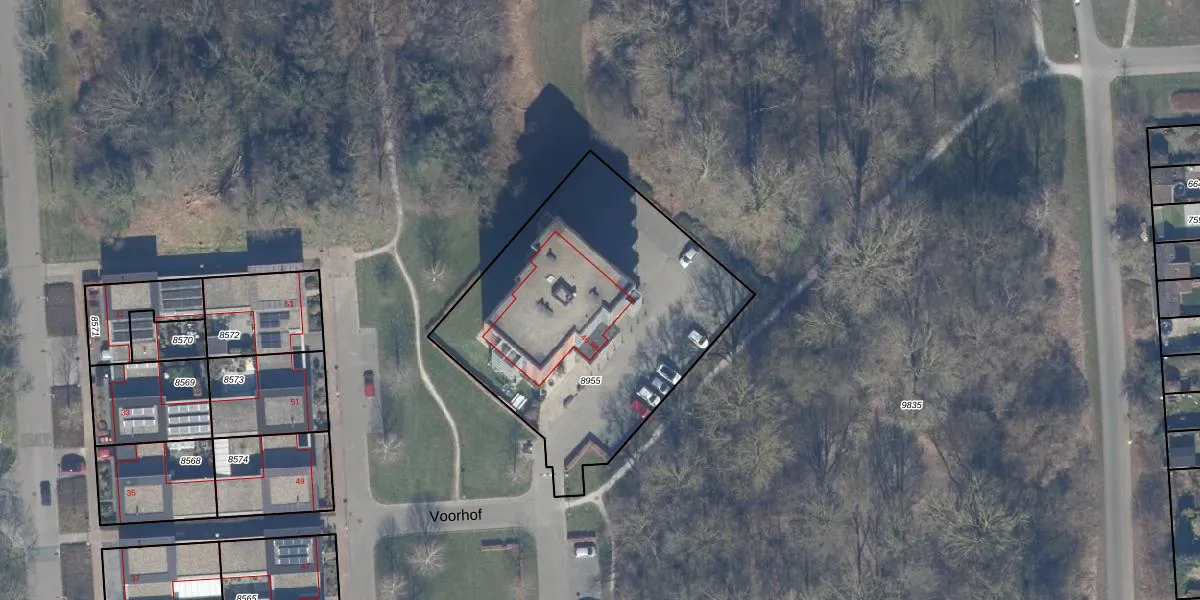 Het perceel waarop Voorhof 64 staat heeft een oppervlakte van 1533 m². Dit is een zeer groot perceel. De perceeloppervlakte wordt geregistreerd door het Kadaster. Gedetailleerde informatie over de maten van dit perceel kunt u vinden in het rapport Kadastrale kaart met maatvoering van Voorhof 64.