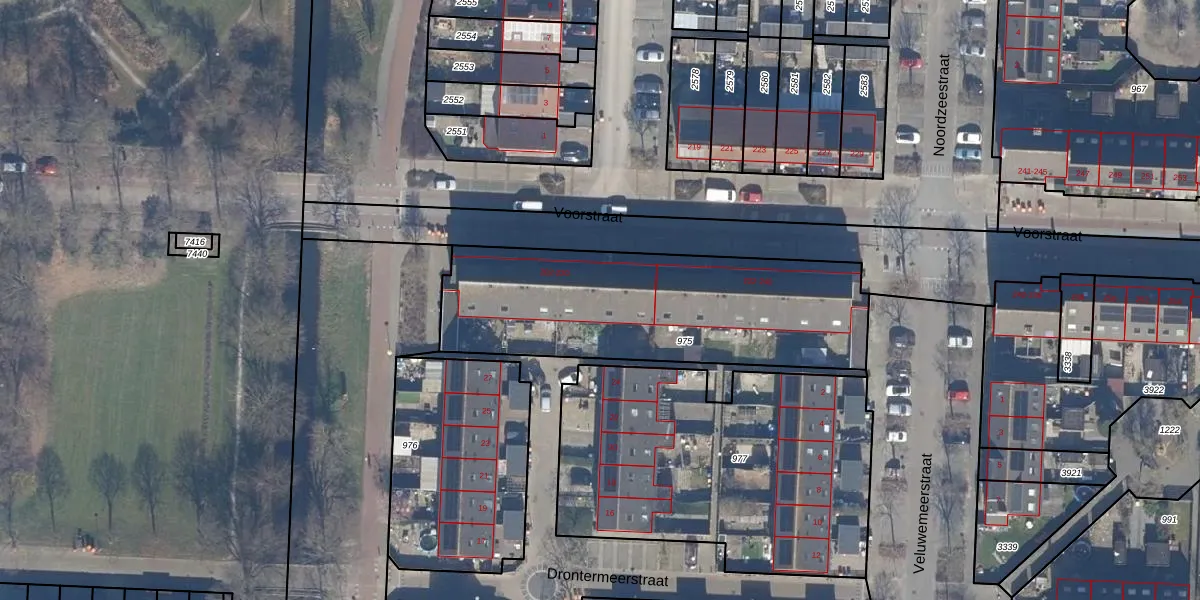 Voorstraat 210 is gelegen op kadastraal perceel LLS00P975. Deze kadastrale aanduiding is uniek en wordt gebruikt door het Kadaster om eigendomsrechten en andere zakelijke rechten vast te leggen. Het perceel maakt onderdeel uit van de kadastrale gemeente Lelystad.