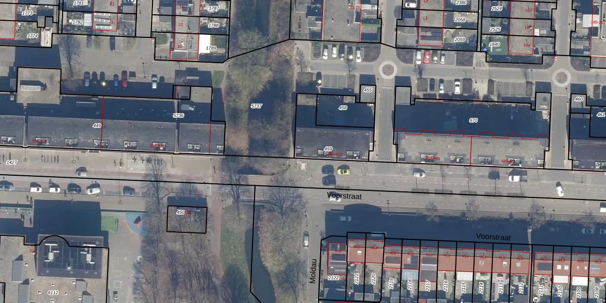 Het perceel waarop Voorstraat 401 staat heeft een oppervlakte van 354 m². Dit is een groot perceel. De perceeloppervlakte wordt geregistreerd door het Kadaster. Gedetailleerde informatie over de maten van dit perceel kunt u vinden in het rapport Kadastrale kaart met maatvoering van Voorstraat 401.