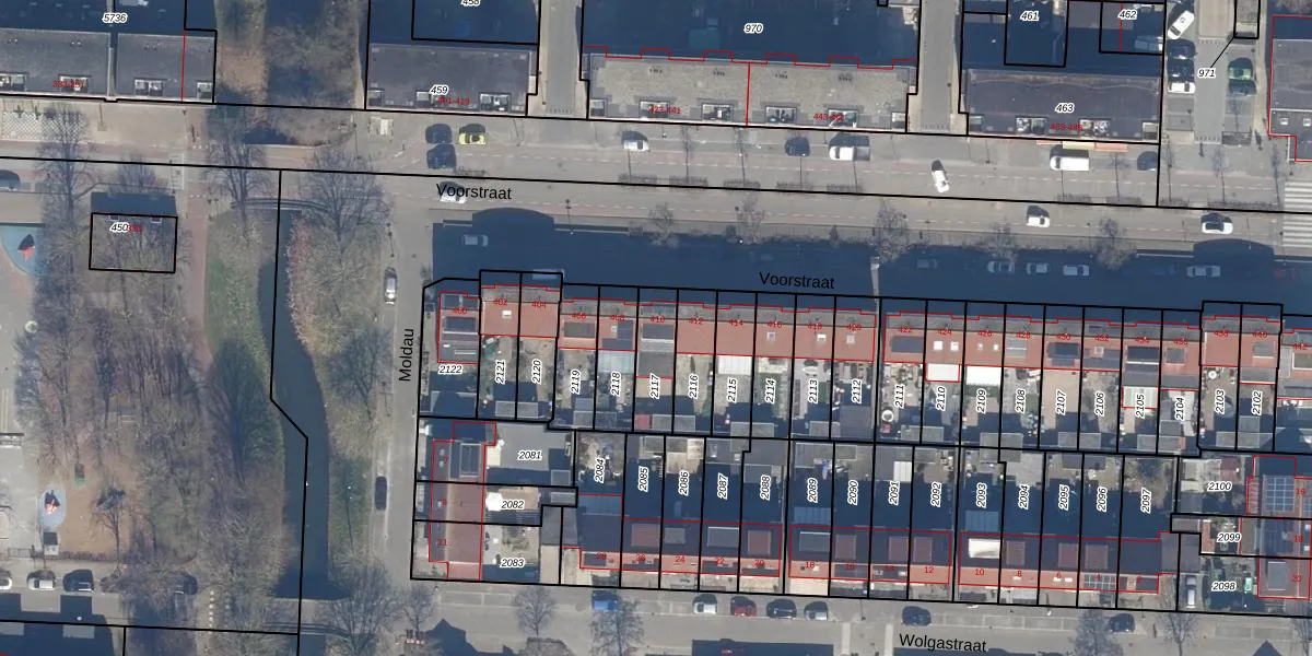 Gebruik de zoekbalk of klik op een perceel voor informatie over de adressen binnen dit perceel.