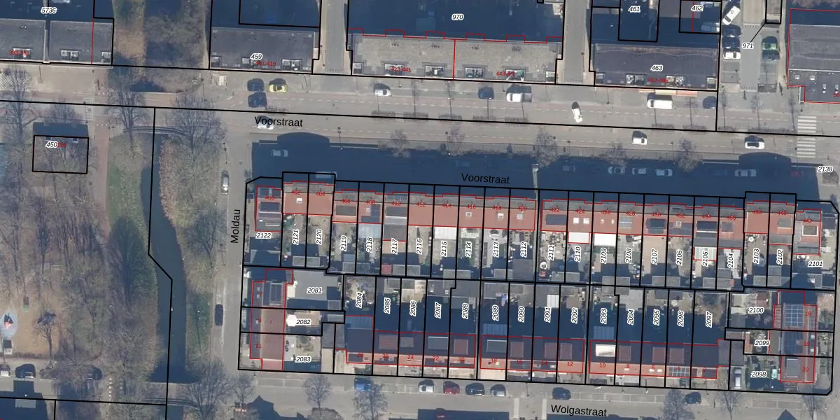 Het perceel waarop Voorstraat 412 staat heeft een oppervlakte van 134 m². Dit is een middelgroot perceel. De perceeloppervlakte wordt geregistreerd door het Kadaster. Gedetailleerde informatie over de maten van dit perceel kunt u vinden in het rapport Kadastrale kaart met maatvoering van Voorstraat 412.
