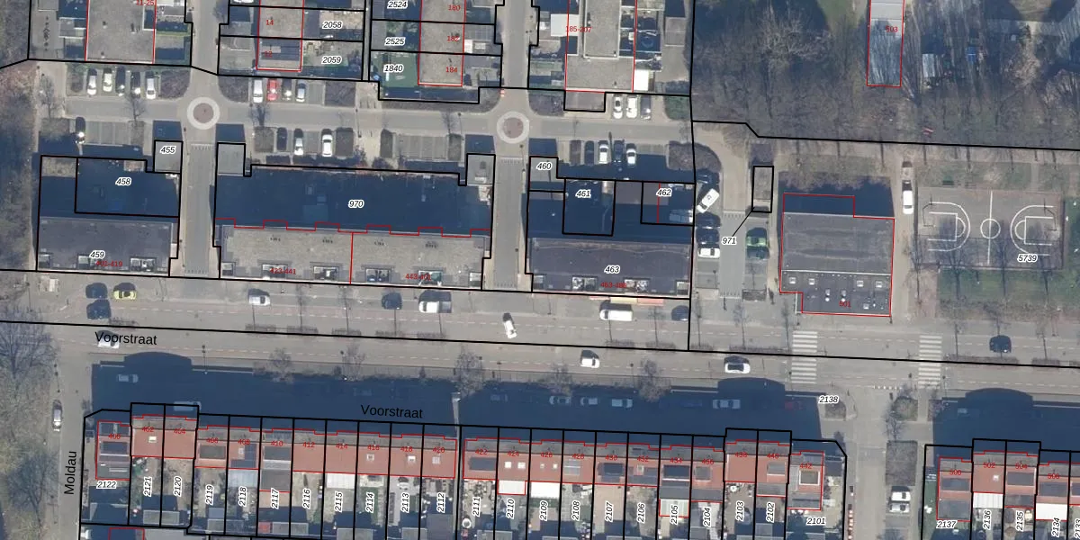 Het perceel waarop Voorstraat 463 staat heeft een oppervlakte van 466 m². Dit is een groot perceel. De perceeloppervlakte wordt geregistreerd door het Kadaster. Gedetailleerde informatie over de maten van dit perceel kunt u vinden in het rapport Kadastrale kaart met maatvoering van Voorstraat 463.