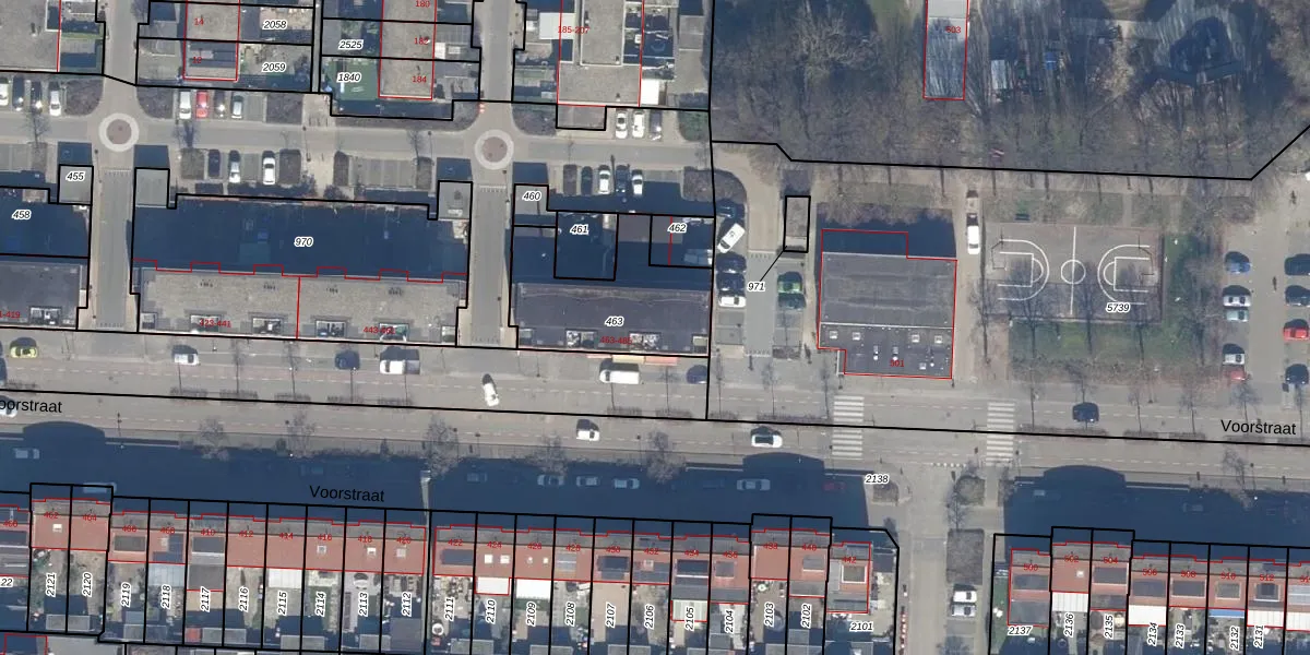 Het perceel waarop Voorstraat 471 staat heeft een oppervlakte van 466 m². Dit is een groot perceel. De perceeloppervlakte wordt geregistreerd door het Kadaster. Gedetailleerde informatie over de maten van dit perceel kunt u vinden in het rapport Kadastrale kaart met maatvoering van Voorstraat 471.