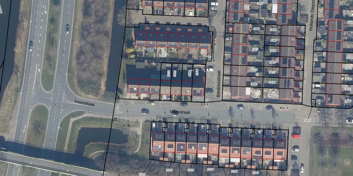 Gebruik de zoekbalk of klik op een perceel voor informatie over de adressen binnen dit perceel.