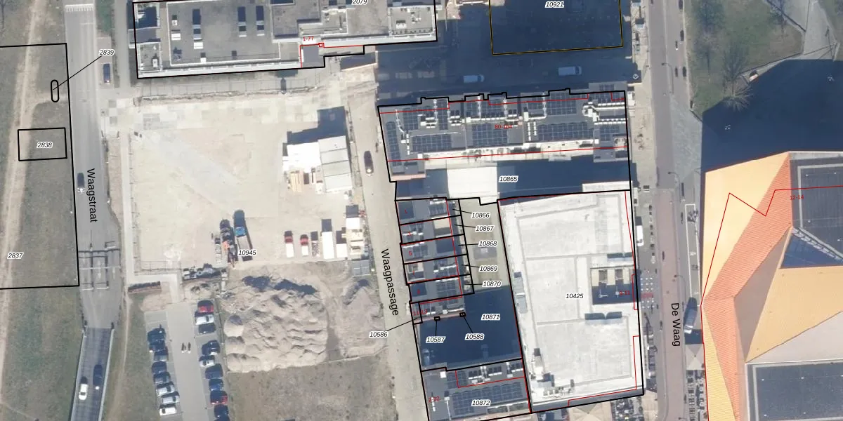 Waagpassage 1 is gelegen op kadastraal perceel LLS00M10866. Deze kadastrale aanduiding is uniek en wordt gebruikt door het Kadaster om eigendomsrechten en andere zakelijke rechten vast te leggen. Het perceel maakt onderdeel uit van de kadastrale gemeente Lelystad.