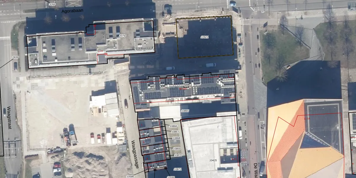 Het perceel waarop Waagstraat 102 staat heeft een oppervlakte van 1365 m². Dit is een zeer groot perceel. De perceeloppervlakte wordt geregistreerd door het Kadaster. Gedetailleerde informatie over de maten van dit perceel kunt u vinden in het rapport Kadastrale kaart met maatvoering van Waagstraat 102.