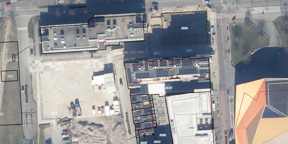 Het perceel waarop Waagstraat 156 staat heeft een oppervlakte van 1365 m². Dit is een zeer groot perceel. De perceeloppervlakte wordt geregistreerd door het Kadaster. Gedetailleerde informatie over de maten van dit perceel kunt u vinden in het rapport Kadastrale kaart met maatvoering van Waagstraat 156.