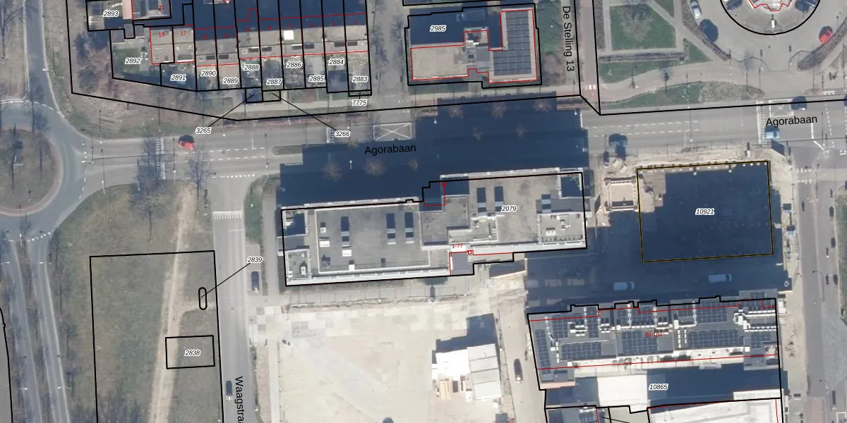 Het perceel waarop Waagstraat 55 staat heeft een oppervlakte van 1350 m². Dit is een zeer groot perceel. De perceeloppervlakte wordt geregistreerd door het Kadaster. Gedetailleerde informatie over de maten van dit perceel kunt u vinden in het rapport Kadastrale kaart met maatvoering van Waagstraat 55.