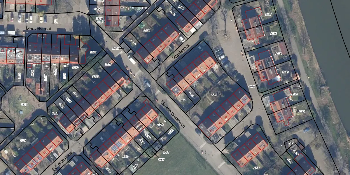 Gebruik de zoekbalk of klik op een perceel voor informatie over de adressen binnen dit perceel.