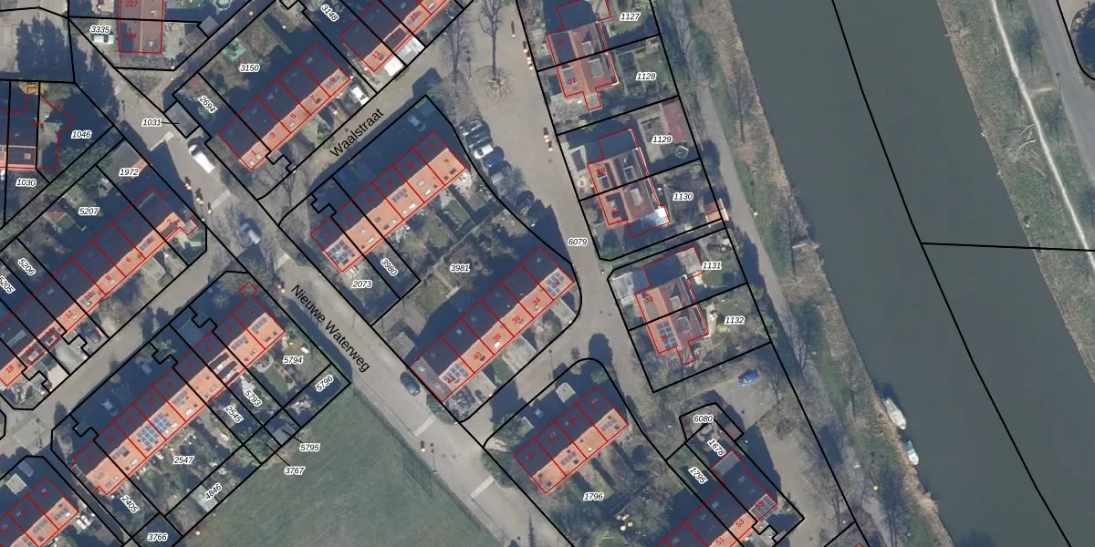 Het perceel waarop Waalstraat 32 staat heeft een oppervlakte van 1350 m². Dit is een zeer groot perceel. De perceeloppervlakte wordt geregistreerd door het Kadaster. Gedetailleerde informatie over de maten van dit perceel kunt u vinden in het rapport Kadastrale kaart met maatvoering van Waalstraat 32.